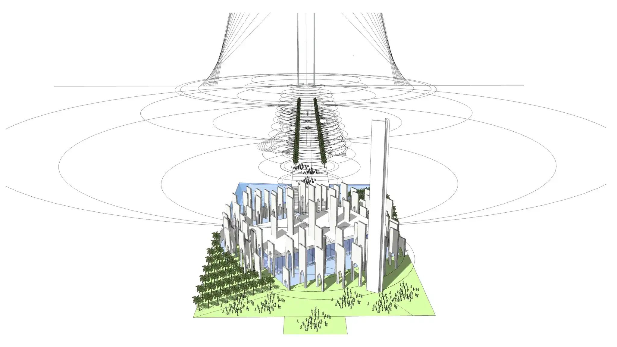 The concept draws from the 99 Names of God—manifested as 99 vertical walls, rising delicately toward the sky like the branches of a tree. Each wall symbolizes a divine attribute, creating a spiritual rhythm that envelops visitors in reflection, reverence, and awe.