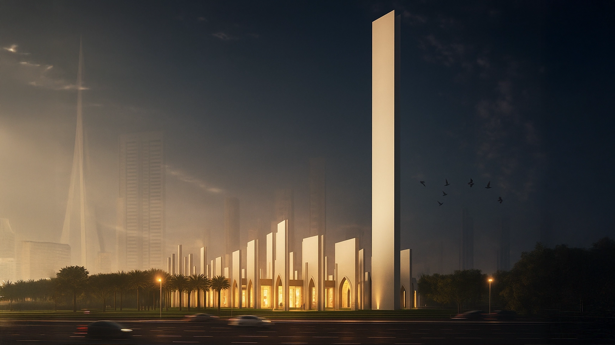 In a vibrant location destined to host the tallest building in human history, rises a mosque unlike any other—The Iconic Mosque, an open-air sanctuary and a bold spiritual statement. It is not merely a building, but an oasis of faith, a sacred landscape designed to resonate with meaning, light, and presence.